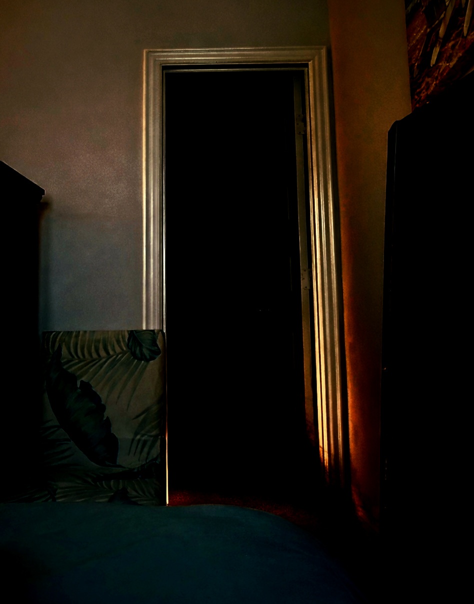 “Yeah, so I just focus on the dark closet and breathe. I used to be so scared of the dark as a kid, always had a nightlight. So, I get this kick now from staring into the dark, waiting for something to take form. Or for something to look back at me.”